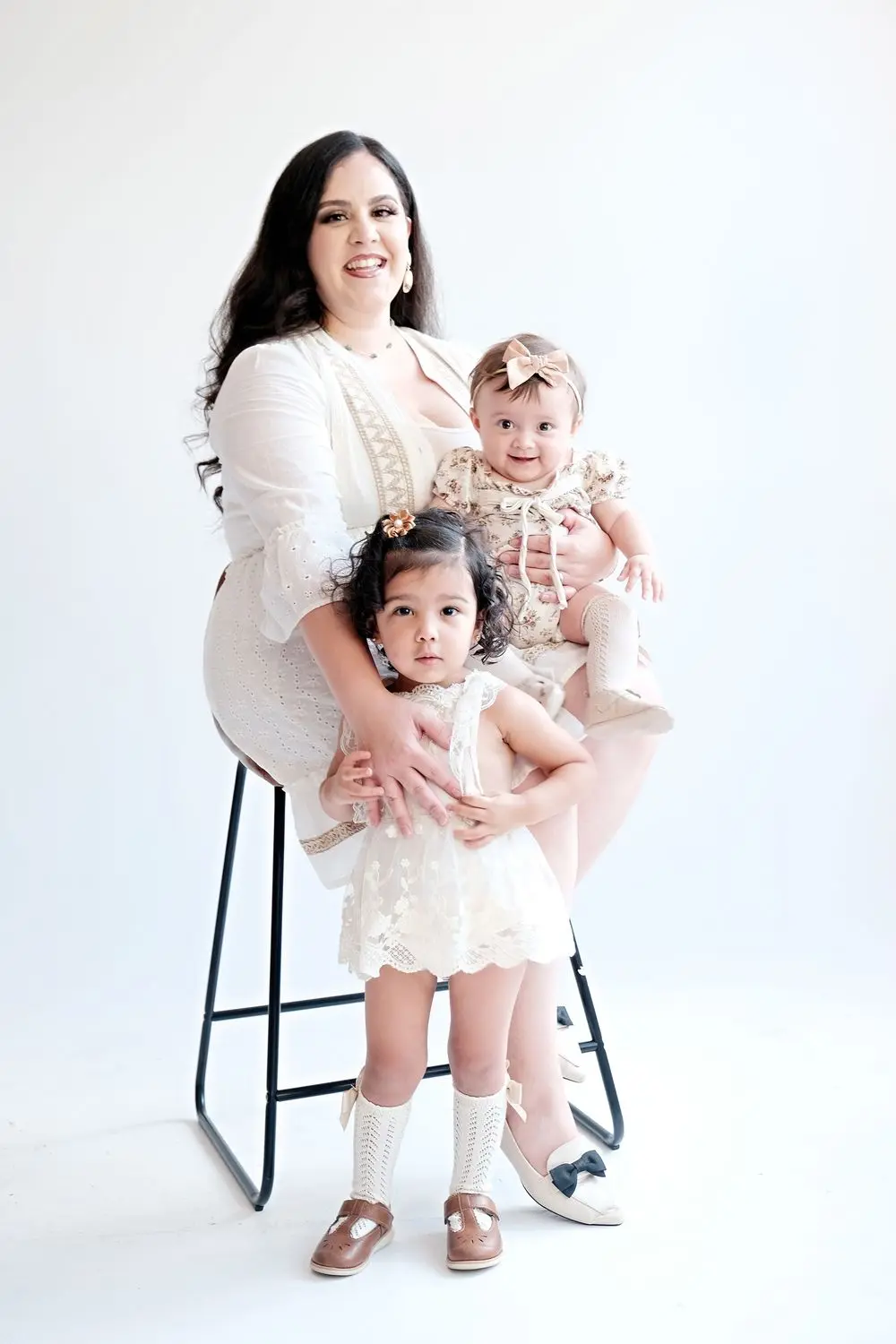 Choosing me means choosing a one-of-a-kind experience you won’t find anywhere else. While most photographers rely solely on outdoor locations, I offer the option of a beautiful white space studio designed with clean, natural light and a timeless aesthetic. This studio is a blank canvas that keeps the focus on what matters most—you and your little ones.